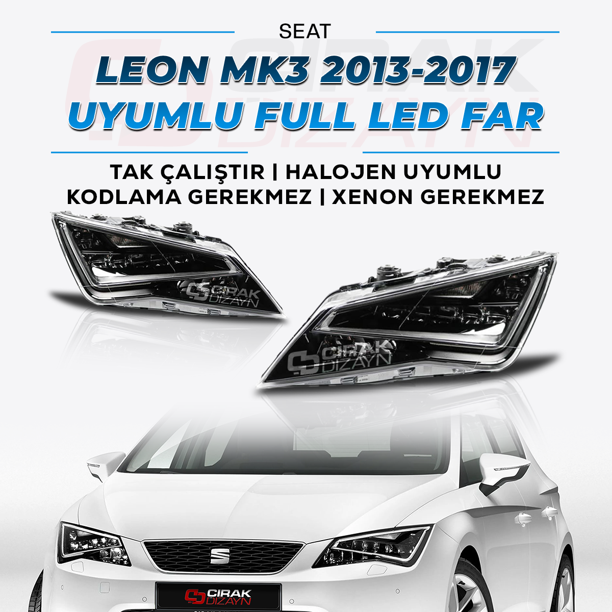 "Sağ ve sol far - TAK ÇALIŞTIR | HALOJEN UYUMLU KODLAMA GEREKMEZ | XENON GEREKMEZ)" - Aracınıza uyumlu olup olmadığını bilmiyor iseniz Whatsapp üzerinden bize danışabilirsiniz.